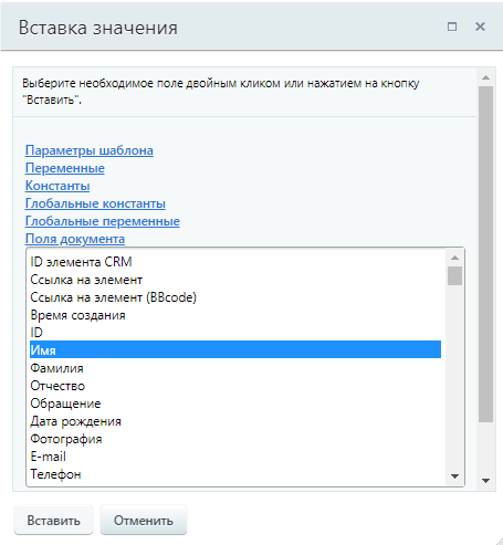 - Напротив каждого поля есть меню с настройками. Открываем его и выбираем раздел "Поля документа".