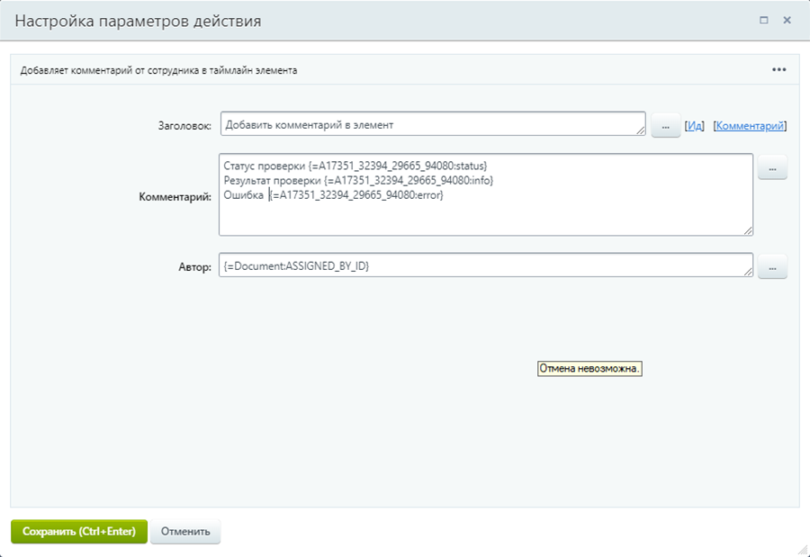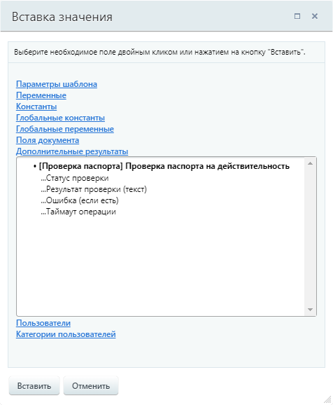 - Напротив поля комментарий есть меню с настройками. Открываем его и выбираем раздел "Дополнительные результаты" и кликаем по пункту "[Проверка паспорта] Проверка паспорта на действительность".
