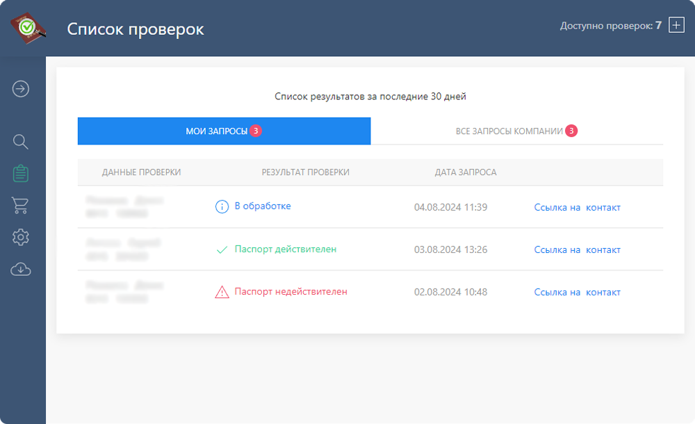 Эта вкладка показывает все результаты проверок за последние 30 дней.