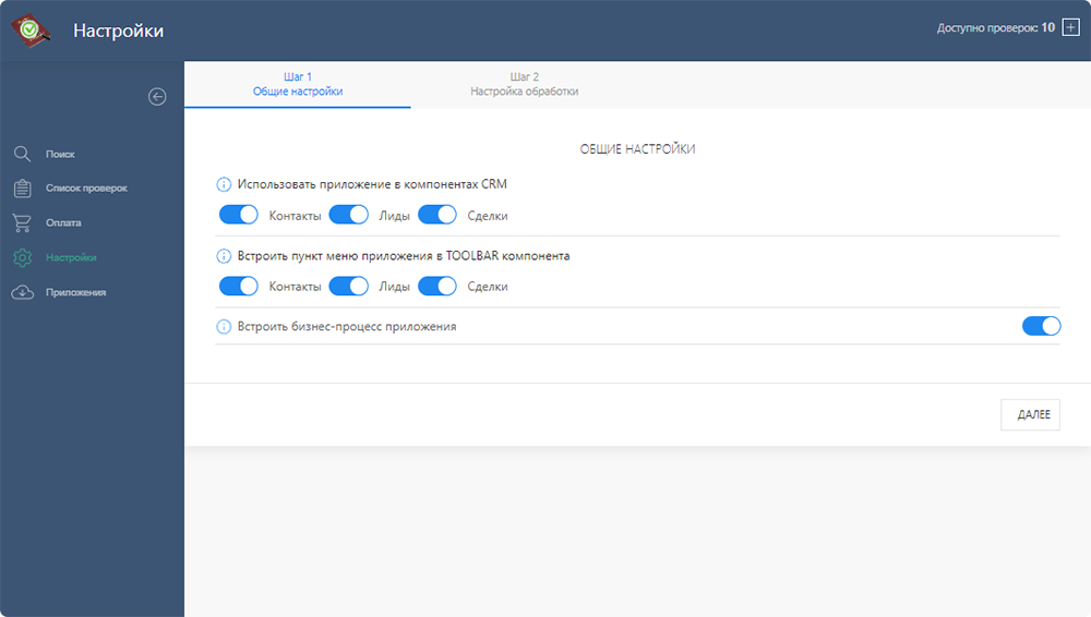 В основное меню CRM добавлен новый пункт "Проверка паспорта". Он находится в разделе приложения.