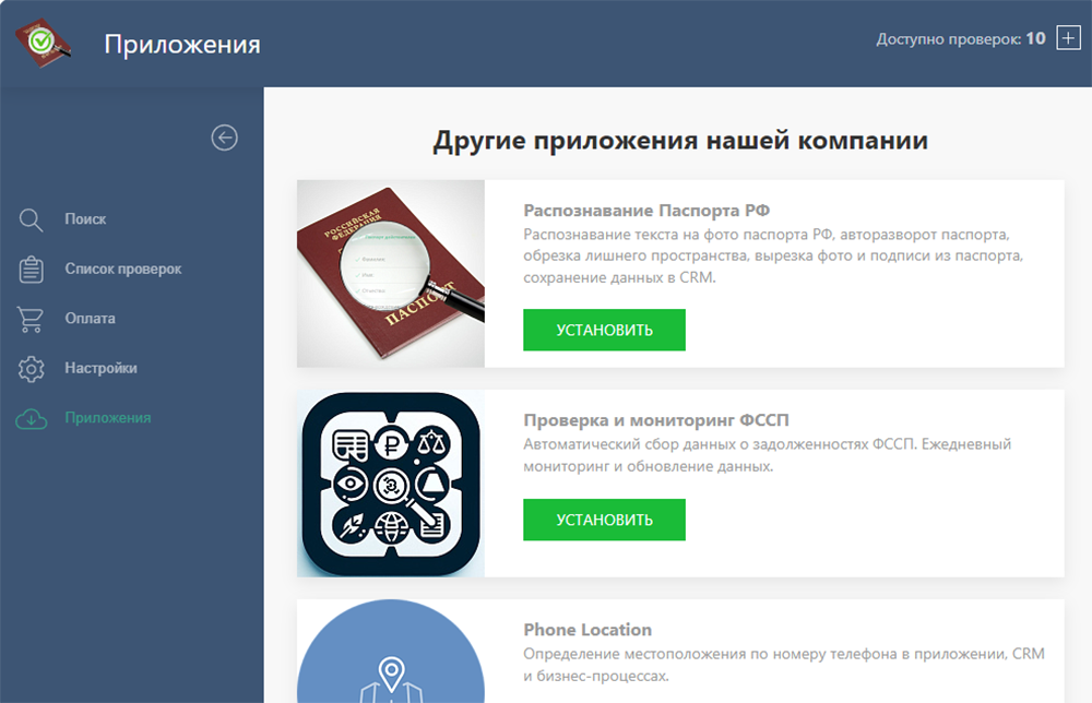 Во время установки приложения устанавливается месячный лимит проверок - 10.